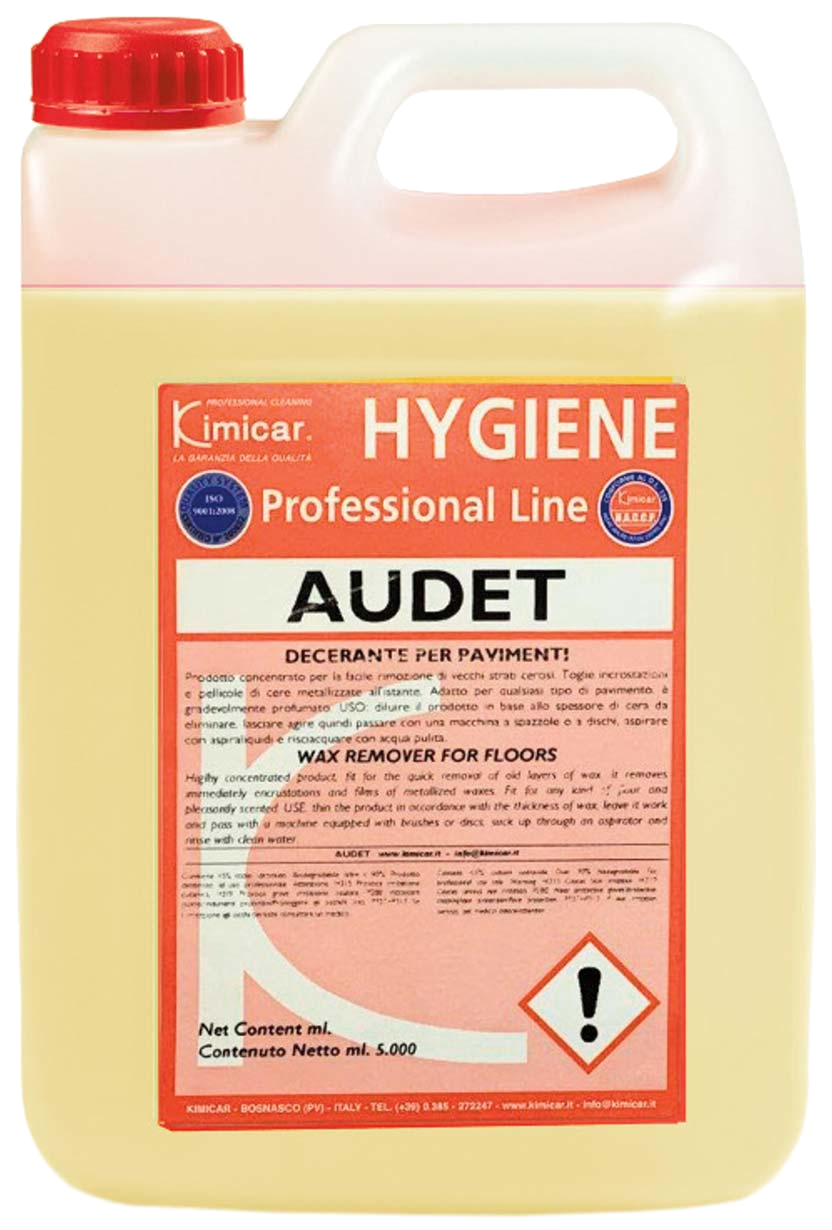 Audet je silný a rychle působící odstraňovač vosku z podlah (decerátor) vhodný pro všechny typy podlahových povrchů. Spolehlivě rozpouští staré vrstvy vosku a usnadňuje jejich odstranění při ručním i strojovém čištění.