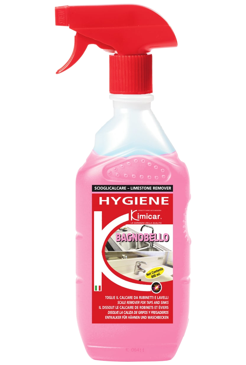 Bagnobello je parfémovaný čisticí přípravek s hygienizačním a lešticím účinkem, určený k odstraňování vodního kamene. Je vhodný na vodovodní baterie, sprchové kouty, sanitární keramiku i všechny nerezové povrchy. Výborně také vybělí spáry mezi dlaždicemi a pomáhá udržet koupelnové povrchy čisté a lesklé.