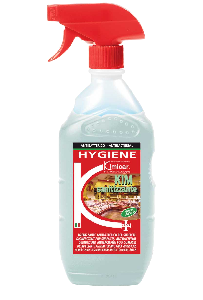 KIM Igienizzante je bezbarvý a bez zápachu čisticí a hygienizační přípravek na povrchy, vyvinutý speciálně pro potravinářské provozy. Kromě spolehlivé hygienizace je zároveň i účinným detergentem. Díky složení na bázi kvartérních amonných solí vytváří na povrchu lehký ochranný film, který pomáhá dlouhodobě omezovat opětovné množení bakterií.