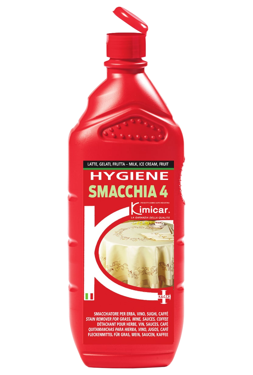 Smacchia 4 je odstraňovač skvrn na prádlo. Účinně odstraňuje skvrny od trávy, krve, omáček, kávy, vína, potu, mléka, zmrzliny, ovoce i zeleniny. Je šetrný k barvám a funguje spolehlivě i při nízkých teplotách.